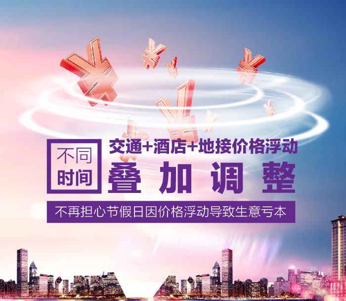 價(jià)格更新軟件再添雙翼,浮動(dòng)價(jià)格多個(gè)時(shí)間段可以疊加調(diào)整,滿足不同時(shí)間段,交通,酒店,地接價(jià)格的不同浮動(dòng)需求,不再擔(dān)心節(jié)假日因價(jià)格浮動(dòng)導(dǎo)致生意虧本了,特別的功能給特別的您!。